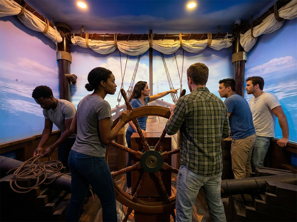 Our experiences are engineered from the ground up using custom sets, responsive technology, virtual reality, and adaptive AI characters that interact with your team in real time. The result is a more immersive, more dynamic, and more unforgettable experience.